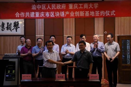 5月31日下午,渝中区委副书记、区长商奎、副区长黄孝明率区政府办、区科委、区经信委、区大石化管委会负责人等一行莅临我校,双方就共建重庆市区块链产业创新基地事宜签订了合作协议。